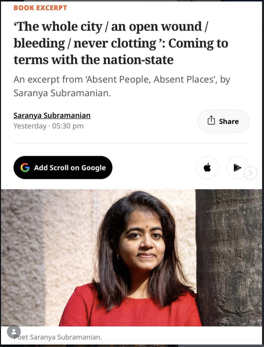 - Finalist: Best of the Net 2024, nominated by The Bombay Literary Magazine